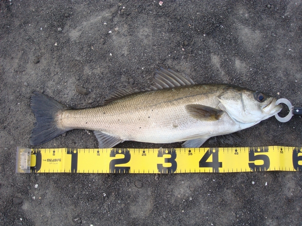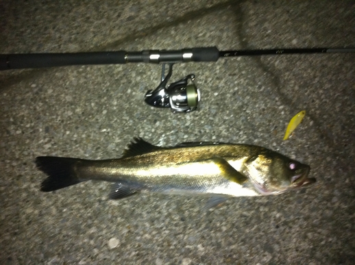 この間の鶴見川釣行でラッキーパンチでシーバスをゲットしてから 再び、やる気スイッチが入りました とは言いつつも、今後も気張らず、お気楽にマイペースでやっていきますが・・・ さて、今回はとある川崎湾奥ポイントに出撃しました。 常夜光まわりのポイントでミノーを岸壁に沿ってキャスト&高速引きすると チーバスですが(σ・ー・)σゲッツ!! 約30cm(ヒットルアー:テリージャーク) 小さいがボウズ回避!で一安心 んでんで、先ほど同様に岸壁に沿ってキャストし、今度は底へ沈めてからの デッドリトリーブ・・・ グッーーーッ!!! とひったくるバイト。しっかり追い合わせて(σ・ー・)σゲッツ!! メジャーずれてますが、50cmほど(CD-7) あまり暴れないお利口さん。サクッとランディングできました。 最後は、ルアーを常夜灯の届かないポイントへキャストし、 ジャークを加え、常夜灯周辺までルアー引っ張ってくる。途中で ギラッ!とした瞬間にバイト! これがリアクションバイトってやつ? まぁどっちでも良くて取り合えずゲットのため丁寧に、丁寧に・・・ 左手はそえるだけ・・・ってスラダンかい!!!(笑) えら洗いも、最小限にこなし、何とかゲット!!! 期待のサイズは・・・ 53cmでした。(CD-7)もっとでっかいハズだったんだけど、 釣れたので万事ok!!!ってことで このポイントはルアーをあまに長く通せないポイントなだけに 食いが浅いようです。針のメンテやしっかりフッキングさせる ことが釣果につながりそうです。 精進せねば! それでは!!!