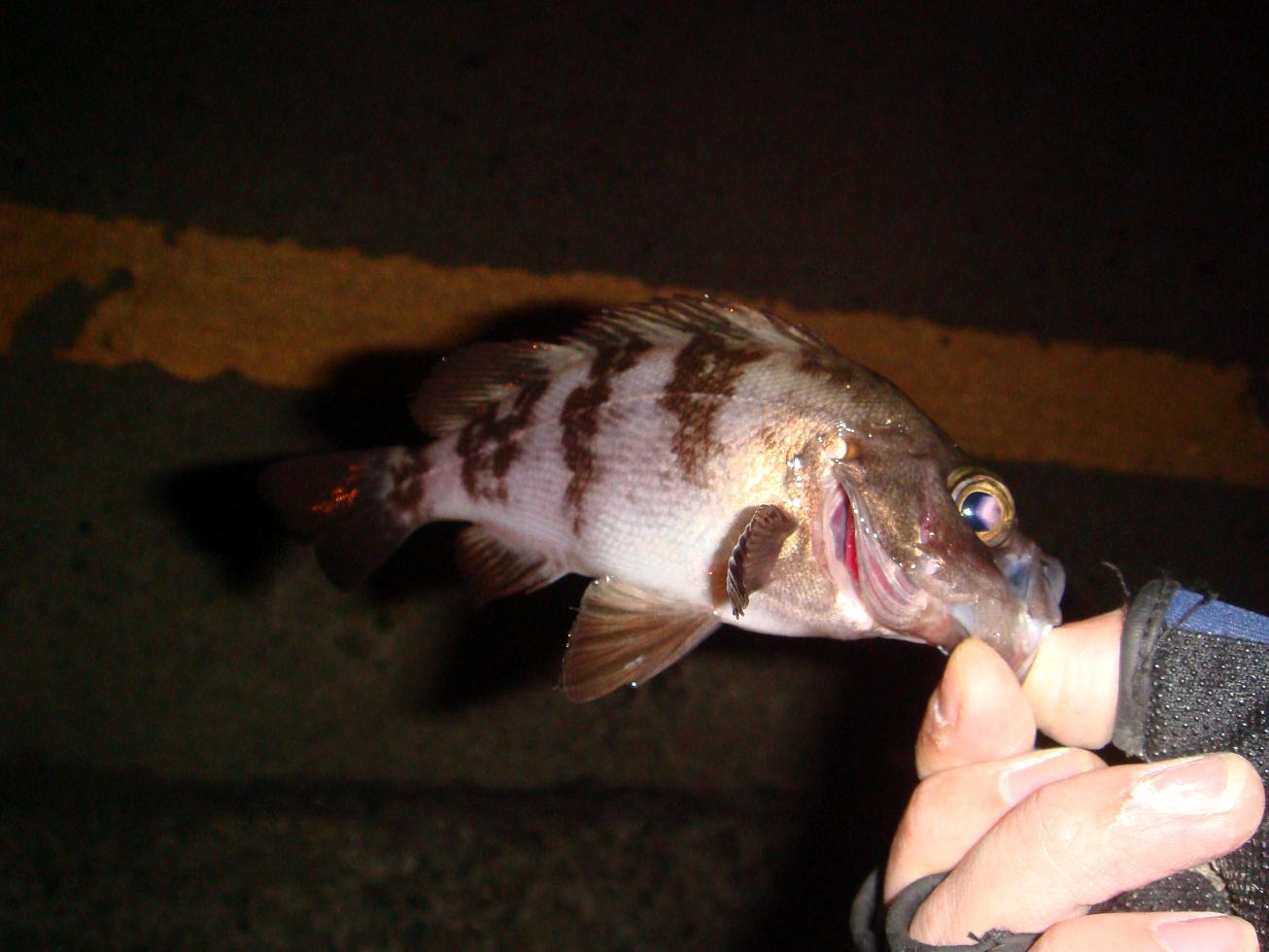 新年あけましておめでとうございます 今年もLet's 京浜Run & Gunをよろしくお願いします 本牧埠頭にロックフィッシュ釣行してきました! 濱太郎さんプレゼンツでど~ぷなアングラー6名が揃いました。 はじめてのメバリングということで、とりあえず持っているワームすべて をタックルバッグに突っ込み突撃 今日は何が何でも一匹は釣りたかったので途中、釣具屋に寄り、 ガルプ!ベビーサーディを購入♪ ポイントに到着し、早速釣り開始~ 2gジグヘッドを岸壁の底まで落として横移動し、これ程かってレベルの デッドリトリーブを繰り返していると コ、コンッ! 初メバルをgetやったぜ~ 23cmでした!カワイイなぁ 同じようなパターンを繰り返していると、ニブ~イ当たりがあり、 ゴミかな?っとルアーを回収しようと巻き上げてみると・・・ 海の中からブラックバスみたいな口がコンバンワ でかっ!!! 尺カサゴには届かないものの28cmとナイスサイズ! よっしゃ! その後もこんな赤ちゃんメバルも 結局この日はメバル&カサゴを7get 集まった仲間と喋っているのも楽しく釣果にも大満足! なんかメバリング本格的に始めたくなってきてしまいました 専用タックル欲しくなっちゃったな~(笑) 【タックルデータ】 ロッド:RYOBI REGNO2256L リール:SHIMANO BIOMASTER 2500S ルアー:ガルプ! ベビーサーディン(黄色) ライン:剛戦Ⅹ SW 0.8号 リーダー:ナイロン16lb にほんブログ村