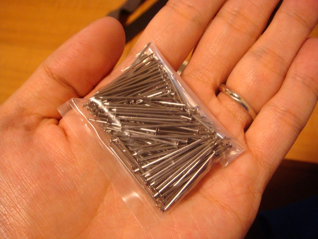 秋も深まり、いよいよ冬の気配が漂ってきましたね。 最近朝、起床が辛いもみじんです。 今回は釣課記録ではなく釣具修理がたまたまうまくいったのでご紹介です。 (もしかしたら、当たり前の内容かもしれませんが、自分並みのビギナーの 方のお役に立てたら幸いです) 気になる内容ですがタイトルのとおり 「小継玉網の柄キャップ緩みカイゼン!」です 玉網を出動させる度にゴムキャップをを外してするする~と魚のもとへ柄を 伸ばしていくわけですが、出動機会が増えてくると柄の内側とキャップの摩擦 によりゴムが磨り減ってきます。 MY玉網は出動頻度は少ないのですが、安かろう悪かろうで買った粗悪品のため 緩みが酷く、釣行時に背中にかけて前のめりに屈むと、するする~とオート発射 してしまい、相当のストレスを抱えていました。 この悩みに対しての解決策は至極簡単でした。 キャップの体積を増やす 体積が増えれば表面積も増えますね。 そうすれば柄の部分との接地面増加や柄への加圧が図れ緩みが解消できる! (はずです・・・文系人間なんで自信ありません。間違ってたらごめんなさい。) んじゃ、どうやって体積を増やすか? 自分はこいつを使いました。 釘です。 釘打ち込んだ際のゴムキャップの裂けと微調整を考慮し0.9mmの 細いものをチョイス!!! こいつを、ゴムキャップへ対角線順に打ち込みんでいけばどんどん 緩みが解消されていきます。 自分の場合は計8本で良い感じになりました。 どうです?パンク的な感じで見た目も良さげでしょ!?(爆) これでも足りなければ、釘の数をふやしさらにパンク化すればOKな はずです 今回ホームセンターで買った釘の100円だけしかかかっていません。 皆さんもお困りでしたら是非お試しあれ! ※改造につきまして事故・故障の恐れもありますので、くれぐれも 自己責任で行っていただけますよう、よろしくお願い致します。