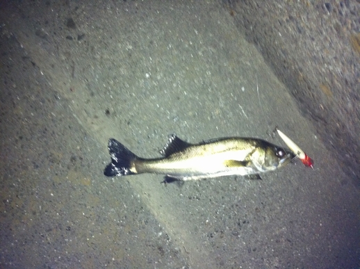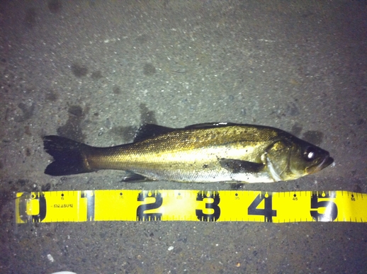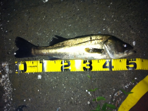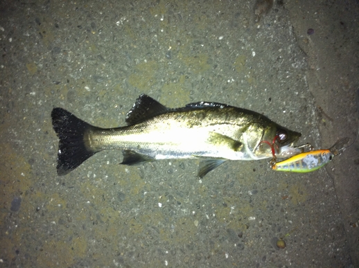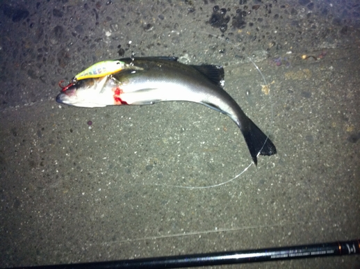 この間の鶴見川釣行でラッキーパンチでシーバスをゲットしてから 再び、やる気スイッチが入りました とは言いつつも、今後も気張らず、お気楽にマイペースでやっていきますが・・・ さて、今回はとある川崎湾奥ポイントに出撃しました。 常夜光まわりのポイントでミノーを岸壁に沿ってキャスト&高速引きすると チーバスですが(σ・ー・)σゲッツ!! 約30cm(ヒットルアー:テリージャーク) 小さいがボウズ回避!で一安心 んでんで、先ほど同様に岸壁に沿ってキャストし、今度は底へ沈めてからの デッドリトリーブ・・・ グッーーーッ!!! とひったくるバイト。しっかり追い合わせて(σ・ー・)σゲッツ!! メジャーずれてますが、50cmほど(CD-7) あまり暴れないお利口さん。サクッとランディングできました。 最後は、ルアーを常夜灯の届かないポイントへキャストし、 ジャークを加え、常夜灯周辺までルアー引っ張ってくる。途中で ギラッ!とした瞬間にバイト! これがリアクションバイトってやつ? まぁどっちでも良くて取り合えずゲットのため丁寧に、丁寧に・・・ 左手はそえるだけ・・・ってスラダンかい!!!(笑) えら洗いも、最小限にこなし、何とかゲット!!! 期待のサイズは・・・ 53cmでした。(CD-7)もっとでっかいハズだったんだけど、 釣れたので万事ok!!!ってことで このポイントはルアーをあまに長く通せないポイントなだけに 食いが浅いようです。針のメンテやしっかりフッキングさせる ことが釣果につながりそうです。 精進せねば! それでは!!!