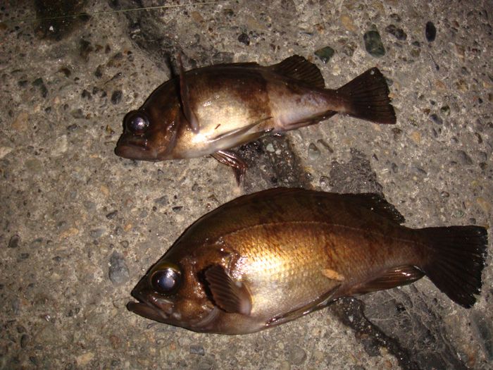2月は引越しがあり慌しく過ごしていますが釣行の時間は しっかり確保しているチャッカリ者こと、もみじんです この間の大潮周りはいつもの本牧へ! 既に先にいた濱太郎さんはナイスサイズを数本ゲットしており、 期待しながら色々レンジを変えながら攻めてみます 潮溜まりで夜光虫が大量に発生しているポイントにて表層を 探っていると・・・ 下から青白いレーザービームがワーム目掛けて突進 すごっ レーザービームのイメージです 【ニコニコ動画】[MAD]イチロー レーザービーム 正体は、、、18cmのメバル君でした サイズは普通ですが、今まで根魚というイメージの強かったメバルが 水深50cmに満たない表層でバイトすることや、夜光虫のおかげで 捕食シーンを視覚的に体感できたという意味で貴重な1本でした その後、同様のパターンでバイト連発するも中々乗らず、結局4本追加の トータル5ゲッツで終了となりました 【タックルデータ】 ロッド:OLYMPIC FINEZZA GOFS-762UL-T リール:SHIMANO BIOMASTER 1000S ライン:ナイロン0.8号 ヒットルアー:1.3gジグヘッド グラスミノー(パールグロウ) スクリューテールグラブ(白) 2/13は地元横浜で開催された国際フィッシングショーに行ってきました newステラやnewセルテートを触ることができたり、ジャッカルの水槽に圧倒 されたり、雑誌でよく見るプロの方とお会いでき、楽しむことができました。 ただ、お披露目だけでなく即売会もやってくれればなぁというのが ありましたね。正直。 newセルテートは、本気で欲しいです ジャッカルの水槽にいたバスはメチャクチャでかくて驚きました ~おまけ~ バレンタインデーに彼女からチョコレート味のイワシを12尾ゲッツしましたw 生でそのまま食べるのが美味しいそうです 大漁です 応援ポチよろしくお願いします。 にほんブログ村